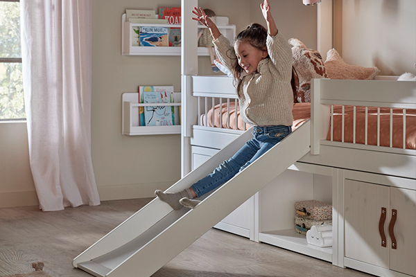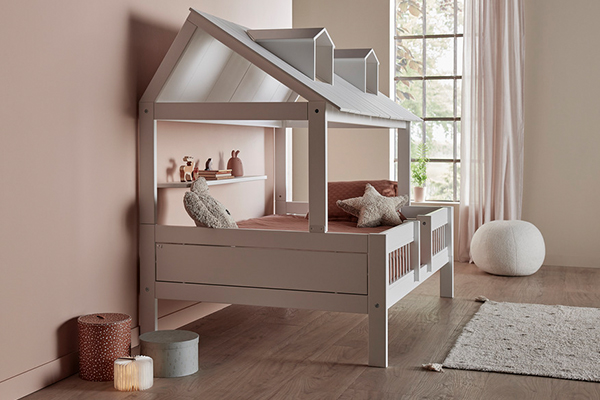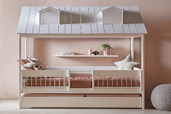 Durch den Hausaufbau bieten die Betten einen geschützten und gemütlichen Rückzugsort, der zum Spielen, Träumen und Entspannen einlädt.